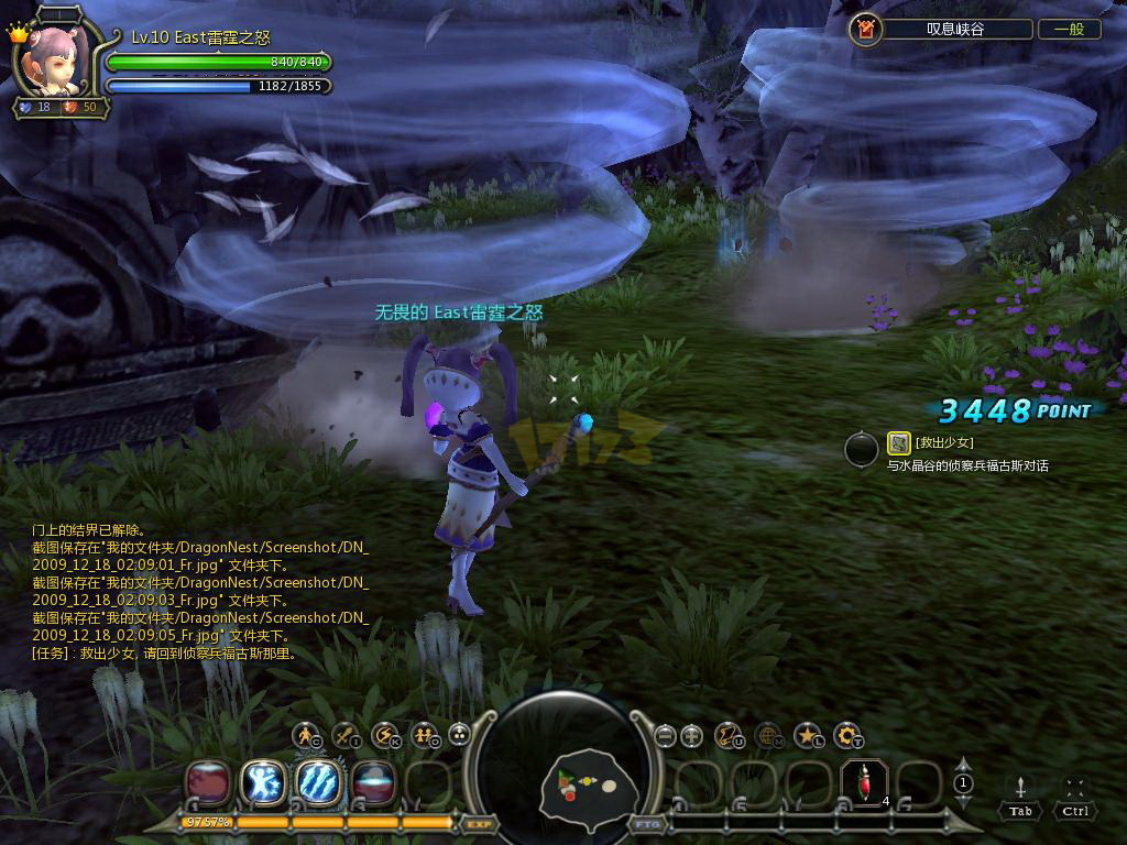 此BOOS技能主要是2个,突然飞到你面前进行连续攻击,主要技能是发动旋风,被风刮到直接飞到天上,深陷其中,无法自拔呀!= 。=