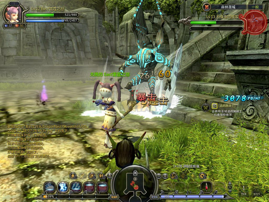 5.森林圣域 【BOSS】介绍 这个嘛,这个嘛,这个BOSS就有点意思了,满身花纹,后背一对大翅膀,一看就是比较灵活的,主要技能,召唤大石头砸人,召唤前天空和地上都会出现巨大的黑色法阵,大概2秒后石头降落,范围之大让人惊叹!注意及时躲开。同时BOSS也会进行冲锋,效果大致和其他BOSS一致。