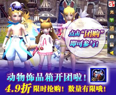 注:团购的“动物饰品箱”有职业限制,购买时和选择角色发送时请谨慎选择。