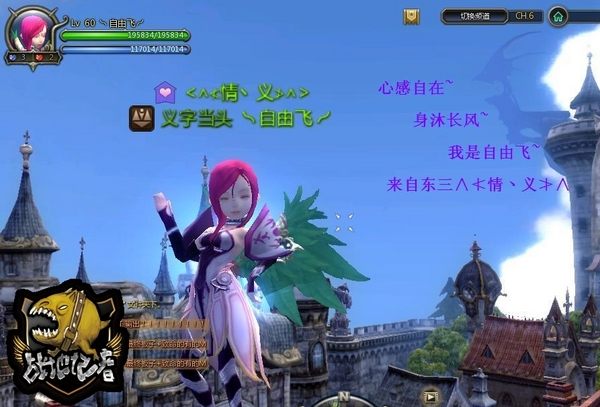 大家好!我是DN记者团的实习记者—╰╮自由飞╭╯,大家可以叫我自由。我是来自东北网通三区1服的黑暗女王,是∧≮情丶义≯∧公会的会长。