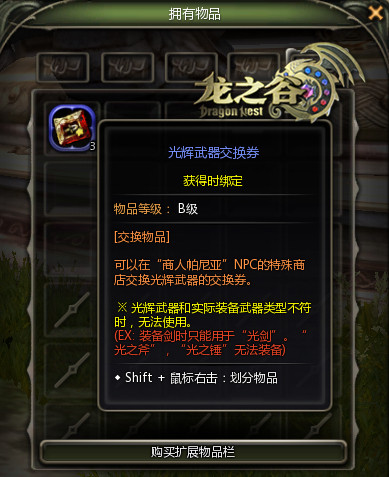 攒够了光辉武器交换券后,即可至NPC商人帕尼亚处换取光辉武器咯~