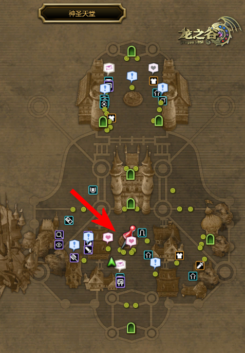 NPC帕尼亚在神圣天堂的位置如图上红色箭头所指向的红色图钉处,如果是平时频繁活跃于莲花沼泽的谷迷,亦可以在莲花沼泽中心地带处找到帕尼亚哦~