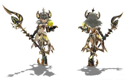【弓手赞龙套装】 :金色树叶形状的弓和头冠,敏捷善良,保护大自然的精灵。