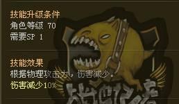 荆棘减少自身受到的物理伤害,注意只有物理伤害。一级效果是减少2%伤害,5级是减少10%伤害。此技能在PVE中我觉得没什么用处,就拿我来说,那几点我宁愿加到别的技能上。但是在PK中