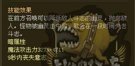 此技能的伤害我们也不谈,直接看效果:在9秒内让敌人丧失战斗意志(最高级效果),看起来似乎很NB。但是这个效果对于一些BOSS和PK中来说完全无用,顶多扰乱扰乱小怪,但是有这个