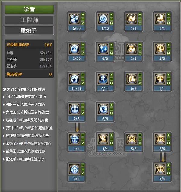 以前我写过一篇重炮加点,不过由于当时的疏忽以及版本的变更,我不得不出一篇新的重炮PK加点造福广大重炮党,其实很多人到了PK这一步,大部分人都已经有了自己的看法和见解,但是很多人都对各类技能抱有误区,那么我将献给大家两套加点以供参考,并对一些技能进行相应的讲解.
