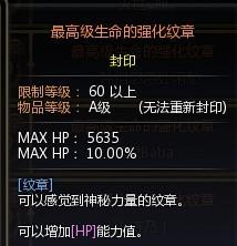 属性强化纹章就针对除属性攻防以外的属性还有MP回复进行强化。以60级的A类纹章为例,它分为强化HP属性的生命纹章