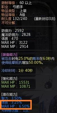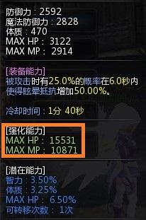 强化属性和附魔属性对于防御的提升没多大的帮助。而象征生命的HP属性呢,除了和防御一样的来源外还有首饰附魔