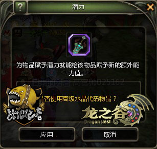 首先入手称心的装备之后,下一步要做的就是让它给你带来的增益可以更上一层楼,因为每一件装备和首饰物品都是有潜力的,而这个潜力可以通过各种代码来激活,武器的水晶代码,防具的玛瑙代码,首饰的钻石代码,代码的获得渠道非常之广,副本,巢穴、兑换都可以,附魔带来的属性提升是直接按照百分比进行提升!自身属性越强,附魔的效果越明显。所以选择一个符合装备以及职业特点的可以让自己优势最大化的附魔是非常有必要的,例如战士需要力量,魔法师需要智力,潜力可以通过潜力提取机转移一次,仅限同品质同等级或者所需要添加潜力的装备(无潜力)等级不得比提取潜力的装备(有潜力)高10级的情况下可以进行,给装备附魔上一个适合自己的潜力也是通往强者之路上必不可少的一件事。