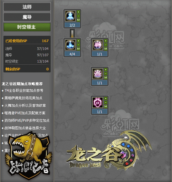 精通高伤害的光能和时间法术,拥有非常强力的伤害,时空领主,掌握时空的精灵——送给所有热爱时空领主的玩家首先是加点1:推荐技巧:能量反射光雨时间枷锁时间干扰(激光破碎或者神秘技巧可代替时间干扰技巧)推荐文章:九尾伤害增加光雨伤害增加时间枷锁减益增加激光破碎伤害增加争议点:点回蓝系列