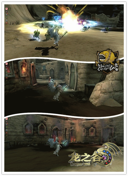 《龙之谷》新三图的地图延续了舞娘卡莉故乡的沙漠风,放眼都是黄沙石墙,与四图的地图相比,新三图的地图更加深入城市,玩家们基本都在弯弯绕绕地前行作战,尤其是泰尔罗萨市区 ,虽然空旷的市区里一片狼藉,房屋里的火焰还在熊熊燃烧,但是整齐的建筑却尽显异域风情,地图相对狭窄;而阿勒努特峡谷 的地图则更贴近野外,与已经出现的沙漠龙地图有几分相似,尤其是各个小地图之间的关口,与沙龙第二区域进图处神似,看起来更宽阔的作战处,四壁是陡峭的沙质山谷;被占领的古代寺院 则相对比较接近四图的布局,高大的建筑内部冲出大量的怪物,作战地图大小不一,节奏性较强。