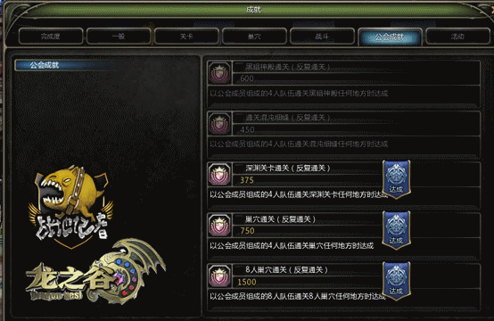 图中的关卡公会经验值是成员通关副本时获得的公会经验,成就经验就是完成公会成就时获得的公会经验,你可以按L—公会成就,来查看这张图: