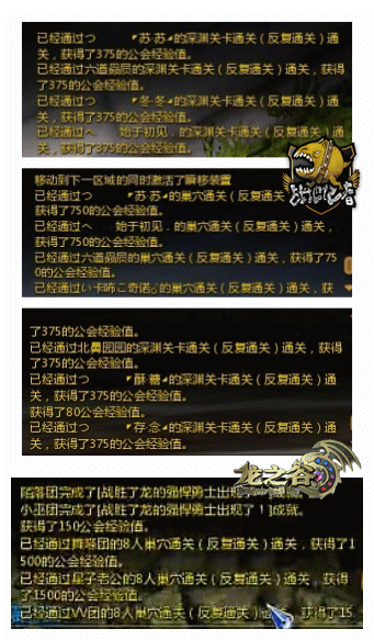 巢穴副本。巢穴副本四人本经验是750x4的公会成就经验+150x4的关卡公会经验,八人本是1500x8的公会成就经验+150x8的关卡公会经验。最快的就是牛头怪巢穴,地狱犬巢穴等低级副本,票价便宜,刷图也如同切菜,会里的小号们也能趁机捞福利求带了。同时,海龙绿龙等八人副本,公会八人组队经验更是爆多,尤其是海龙巢穴,对于有的新公会,绿龙可能尚有一定难度,但是海龙则很轻松了,刷得也快,也能在暴走岛等关卡进行一些“有趣的活动”。
