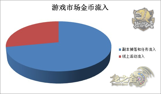 在《龙之谷》中,市场的金币不断流动。每个玩家的金币来源有以下几种:向NPC出售杂货,副本巢穴掉落金币,完成任务和成就获得金币,游戏线上活动赠送金币,向其他玩家出售道具。前三项我们把称为游戏的经济基础,因为前三项是游戏整体市场金币的来源,也就是所有玩家金币总和的来源,市场的金币就是通过这些方式流入的。有人可能会问,为什么不把线上活动这一项纳入经济基础呢?的确,像去年的开蛋送“能够满足心愿的宝珠”这个活动,这些卖给NPC后获得的金币确实可观,但是这些线上活动多数是要花钱的,并不平民化、大众化,并且这些活动相当少。所以这种方式我们暂且纳入非常规方式。而2013年春节的红包活动是一个很平民化的金币来源,但是这种活动直接导致了游戏市场物价的上涨。不过相信很多玩家都有经济头脑,这个活动一过,先把金币存着,等到市场恢复平衡时再把金币拿出来用。春节的《龙之谷》红包活动,是有史以来单位时间内金币流入市场最多的时期,但是不确定明年春节或者以后还会不会出这个活动了。所以,这个平民化的活动,我们也暂且纳入非常规方式。
