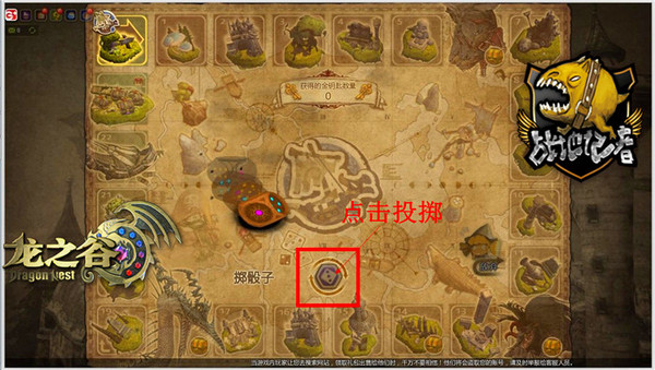 大陆探险总共有22个岛,外加一个获得奖励的宝物仓库,按顺时针方向分布,根据所投掷骰子的点数大小往前行进。如图,屏幕中下方的旋转箭头按钮,点击后开始投掷骰子。从最左上角的起点开始,每次骰子投出多少点,便跳转到相应的岛屿进行探险,直到走完一整圈,停靠至最后一个庆典宝物仓库的岛屿上,获得奖励,结束关卡。这种掷骰子、跳格子的游戏规则,相信很多人都曾玩过类似的玩法,也就是通常所说的——“大富翁”模式。而在《龙之谷》大陆探险中,非常特别的是,由于是否消耗入场券的判定标准,是角色有没有进入最后一个岛,因此,在进入“庆典宝物仓库”这最后一个岛之前,如果点击界面右下方的“放弃”按钮,便不会消耗入场券。想要在排行榜上傲视群雄的各位勇士们,可以“战略撤退”,以便收集到更多的阿尔特里亚黄金钥匙哦! 进入各探险岛屿后,完成任务有其特定要求,比如击杀BOSS、击打部位、点击顺序、物品找寻等等……绝大多数关卡的难度都较小,但是要注意,每个任务都是有时间限制的。倒计时位于界面中下方缩略地图的顶部,显示的时间即代表完成该关卡所剩余的有效时间。无论骰子掷到了什么关卡,挑战的BOSS是哪个,难度是高是低,请大家务必抓紧时间。
