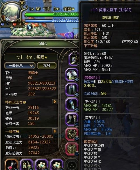 因为有时玩玩不完善,防具后缀当然是生命套啦~1w回血才是王道~