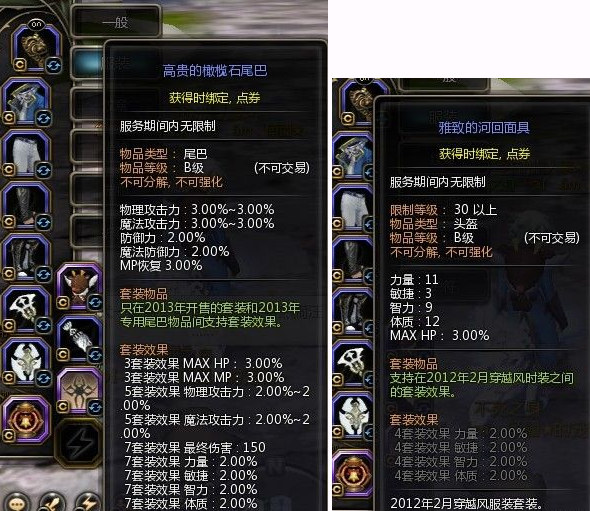 选用的是套装的尾巴来配合时装实现7件套属性。