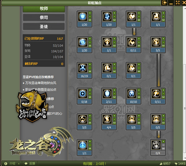 5.痊愈点满,加光攻,每个圣徒都有一颗DPS的心,把十字雷神软妹必备,点1也是可以的。