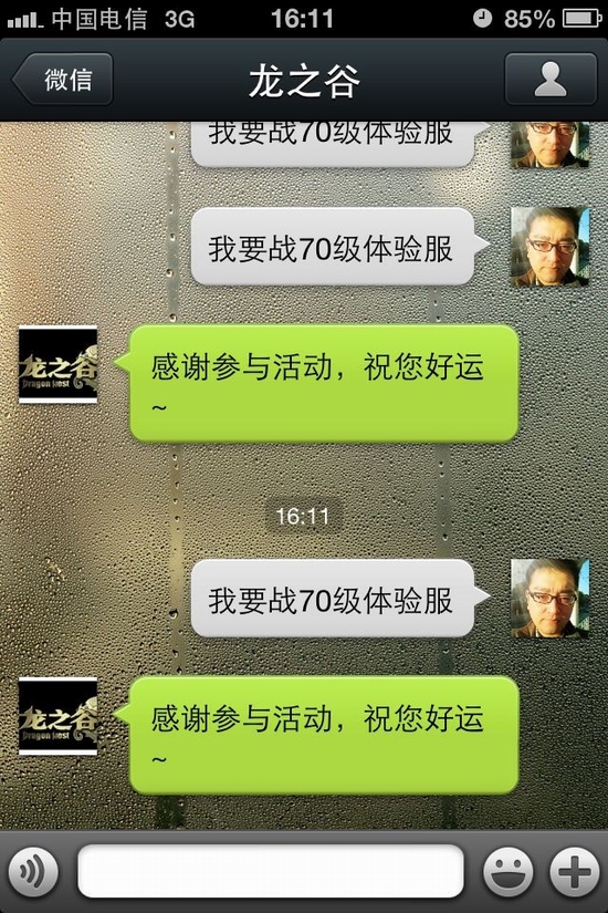 《龙之谷》在微信平台上也开放了体验服账号赠送的活动。在6月24日-28日期间,回复“我要战70级体验服”即有机会获得体验服账号,无需@好友也无需花费大精力,短短十个字不到的内容就有机会获得“体验服录取通知书”。每天20个体验服账号免费送,精彩一夏轻轻松松!