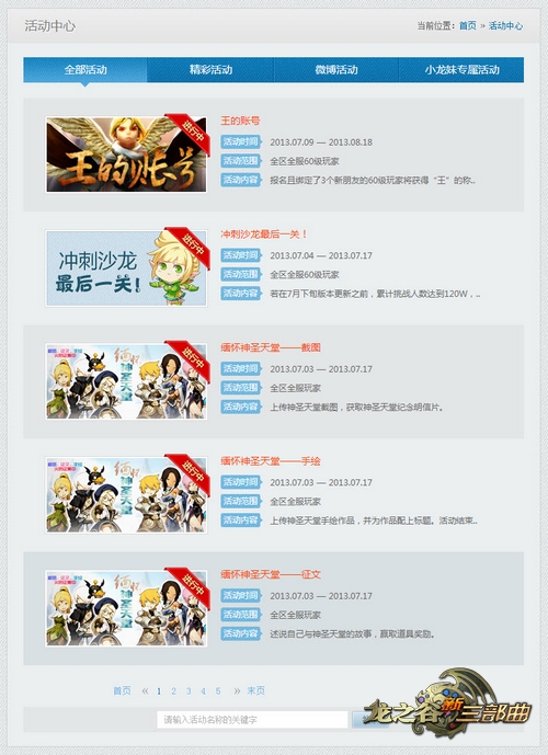 随着互联网的壮大,谷迷玩家获取信息的方式也越来越多样。无论是关于《龙之谷》的动态信息,还是活动内容,玩家都有可能从微博、其他玩家口中等方式“道听途说”。为了来官网求证,以往只能通过一条一条浏览的方式进行排除。而在新版《龙之谷》官网,玩家可以进入活动中心或者新闻中心进行关键字搜索,迅速锁定自己想要寻找的信息,再也不用为了看一条条新闻而眼花缭乱了!