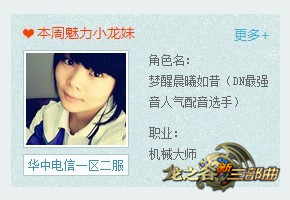 在《龙之谷》新版官网中,特地留出了一个版块内容,向谷迷玩家每周推荐一位小龙妹。小龙妹作为《龙之谷》游戏的特殊“品牌”,不仅在游戏内大展身手,就连游戏外也可以看到他们活跃的身影。DN最强音配音大赛、CJ模特选拔现场等,小龙妹们从来都不会让大家失望。如今在官网首页也将能看到每周不同的魅力小龙妹,总有一款是你的最爱!