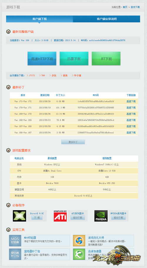 《龙之谷》游戏下载页面也随着官网的更新而改头换面,简朴清新却又充满了设计感的配色与排版让整个下载页面看起来更加舒服。无论是下载完整的客户端,还是更新最新的补丁,玩家都能迅速锁定,在极速流畅的下载网速下感受飞一般的游戏体验。再也不用为纠结下载客户端而烦恼啦!