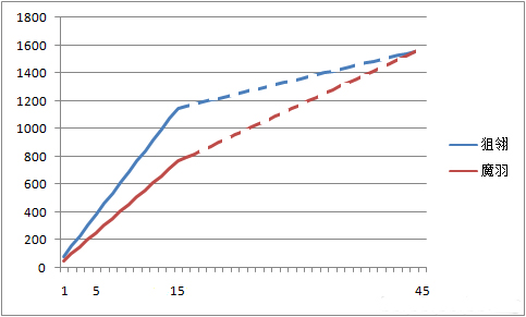 狙翎前15秒输出总量约占总输出的70%,魔羽前15秒的输出总量约占总输出的50%。