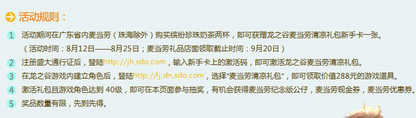 龙之谷与麦当劳活动地址:http://act.dn.sdo.com/maidanglao/