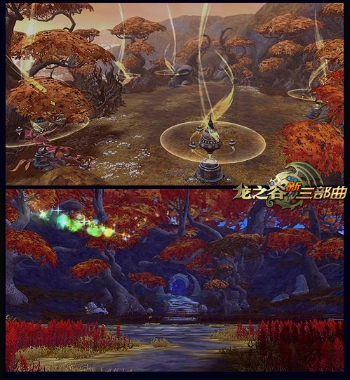 远山、枯树、溪流,抛开这里是怪兽巢穴不谈,尽看风景,绝对胜过众多所谓天堂风光。如此独具匠心的设计,也为“守卫者巢穴”平添了一份静谧。当然,这只是表现上的一种静和美,夜晚降临,这里将是怪兽的乐园与冒险家的死地。