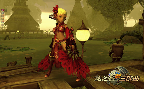 原本就充满了西域风情的《龙之谷》舞娘在换上了新时装后,更加的妖娇美艳。极少的布料设计符合舞娘一贯的性感风情,而手上的玫瑰装饰和袖摆在舞动间更加飘逸,相信无论是在行走还是在战斗场面,一定能让人赏心悦目。头上的发饰融合了羽毛和蕾丝这两种元素,仿佛西域待嫁的公主,等待沙漠王子前来迎娶。