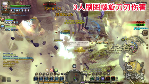 我们先从上面那张螺旋刀刃在3人组队和8人沙漠龙巢穴的伤害差别说起。3人本的这个图,是平时随意一次组队截图。是我在整理稿子的时候找到的,没有任何针对性,职业就是奶,刀锋,影舞。这3人能打出最大的伤害,就是:影舞本身使用捆绑增加攻击,物卡使用九天玄武P1,P2,奶再刷上BUFF。在这种情况下,我们可以看到暴击最多也就是300W+的伤害。白字是物卡P2的附加伤害,可以看出,基本是翻倍的。这样的配置,并非是刻意针对物攻职业输出最大化配置的。