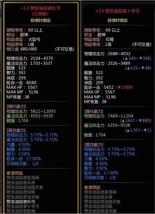 2 面板方面,随着强化等级越来越高,十字弓和长弓的上限越来越接近,而十字弓的下限更高,因此输出更加稳定,仅从输出方面来说建议魔羽使用十字弓!!