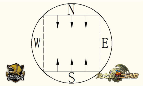 以小地图为准,绿青蛙战士进攻为从N级或者S级出发,一排青蛙战士跳跃到对面,此伤害不高,但是硬直伤害很高,队员会被各种断技能。几乎可以打断所有技能。而圣骑如果给个护卫者姿态则不会被断。最好的方法就是躲进安全区域,如图所示,W区或者S区为安全区域,当看到屏幕提示黄字时,就立即撤离到W或者E区域。