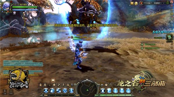 当屏幕提示“绿青蛙战士进攻了”几个黄字时,应参照小地图躲向两边。如图所示。