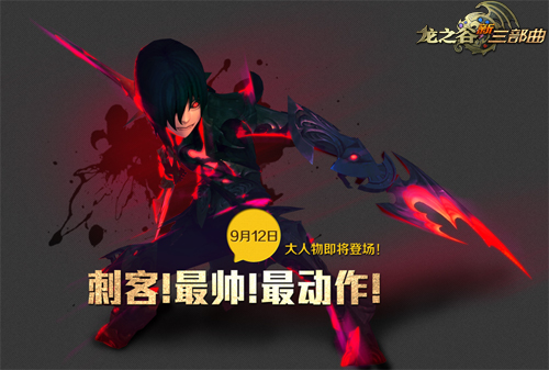 《龙之谷》新三部曲之最终曲“大人物”,9月12日正式火热公测!最帅最动作的刺客这个大人物登场,有谁能不爱?在一步步更加了解刺客的同时,来参加版本更新前的送装备活动吧,刺客顶级装备等你来拿!