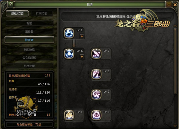 9月4日《龙之谷》新职业“刺客”的 媒体测试服正式开放,记者君进入测试服后就马不停蹄地开始进行各种数据勘察及测试了~这次为玩家们带来的是新职业刺客二转掠夺者(也就是韩服的乌鸦,主修 暗系技能的职业)的加点,整体上是纯刷图的加点的轮廓,单修一支技能树,技能点高保证输出。加完后还有14点sp可供玩家调节,文中会提及~