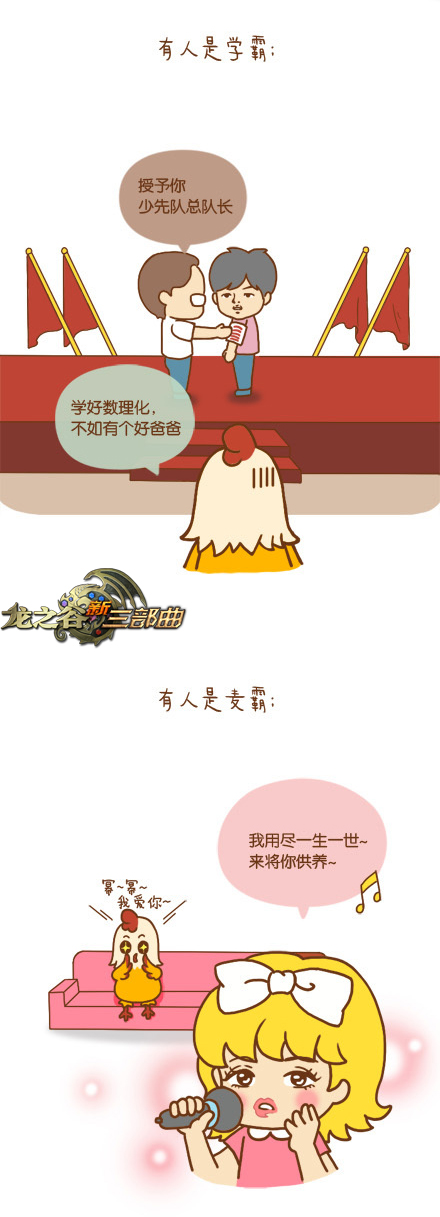 说到近期爆红的网络漫画形象,郭斯特一定是其中之一。爱自嘲又爱讲大道理的郭斯特将新一代鸡神的形象发挥到淋漓尽致。最近郭斯特收起了它自怨自怜的态度,发誓要成为大人物,而它的第一站就是《龙之谷》!国产山寨机用腻了,郭斯特觉得唯有土豪金才配得起它现在的身份。于是,《龙之谷》里的大人物活动就成为它近期的突破对象了。《龙之谷》联合郭斯特手绘演绎鸡霸诞生记,创意漫画只为让你笑。