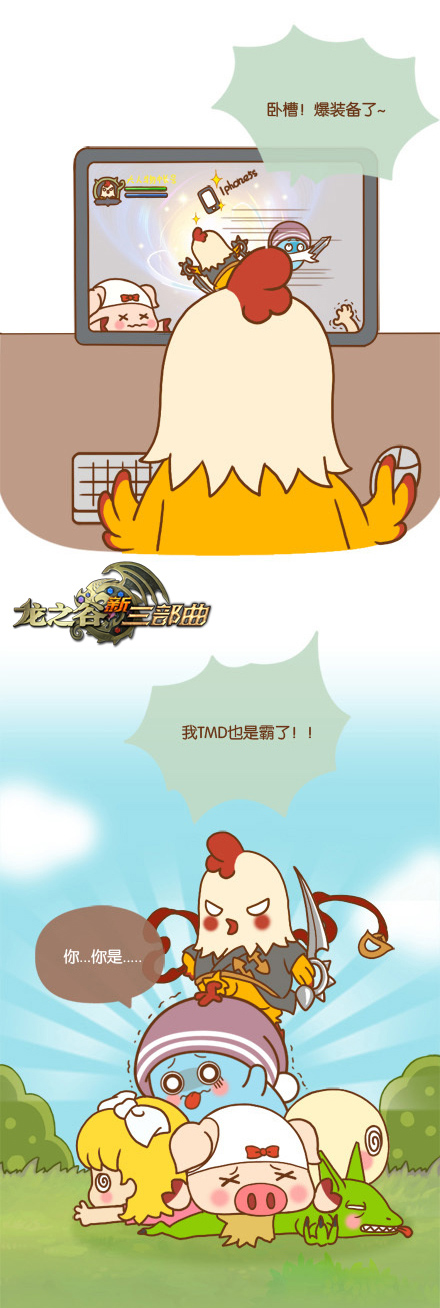 《龙之谷》新职业刺客以更加酷炫狂拽霸的造型在近期登场了。喜欢尝鲜的郭斯特在漫画里也来了次服装秀。在变身大人物以后,它穿上了高端洋气上档次的刺客装备偷袭了它的小伙伴。好吧,当那套犀利+凌厉+生猛的装备和动作出场后,大家终于相信郭斯特也成为一方霸主了。这就是鸡霸!羡慕别人不如羡慕自己,不思考未来永远只能羡慕妒忌恨。郭斯特在看到小伙伴们各种人生赢家之后,终于醒悟了自己的人生方向。那就是,人人都可以做大人物。