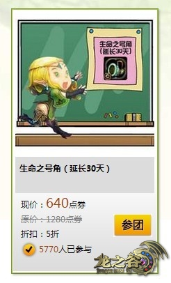 在《龙之谷》冒险,总少不了宠物的陪伴,一路走来更少不了生命之号角的帮助。如果没有生命之号角,宠物的生命将无法得到延续。如今这件宠物居家旅行必备之道具在《龙之谷》团购福利第一波中半价出售,史无前例的折扣,让你对宠物的爱加倍体现。拥有心爱宠物的你赶紧囤货吧。第二件半价神马的简直弱爆了,《龙之谷》让你第一件就享有半价的超值优惠!