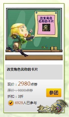也许是曾经的一时冲动,也许是原本的角色名背负了太多伤心的过往,如今的你只想换个名字从头来过,那么你绝对不能错过团购的“改变角色名称的卡片”。《龙之谷》团购福利,让你以三折的价格就能获得第二次生命。作为《龙之谷》此次团购福利第一波最给力的折扣商品,你还在犹豫什么?