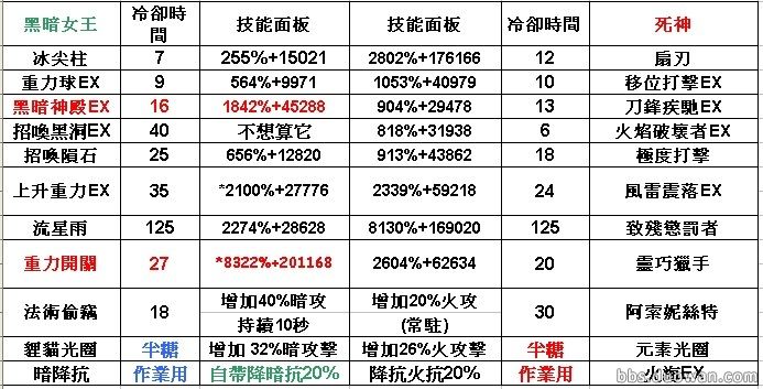 半糖:2014第一波调整后 各职业技能面板数据比对整理