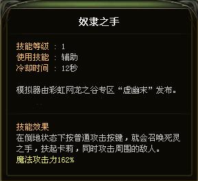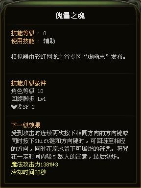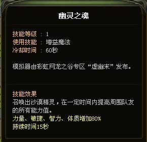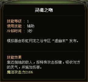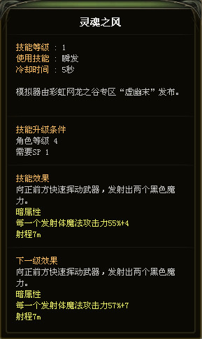 可以看到,灵魂之风这个技能的CD非常短,属于暗系魔法攻击,灵活性很高。只是该技能的成长较差,攻击力较低,所以果断不浪费技能点在此。虽然不知道其他的同学有没有点这个技能,但是笔者在用噬魂刷图的时候没用过这个技能。