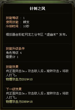 针刺之风技能是属于CD短,灵活性高的技能,在PK场上也是有一定的作用:可以把敌人打飞。只是此技能是物理系攻击,估计在物理卡莉的技能中占有一席之地。但是作为魔法系卡莉,此技能基本可以完全无视。