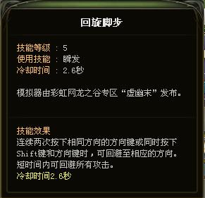 这个技能不必说,肯定是必须点满的。而且5点SP点满级回旋脚步后,2.6秒的CD可以让你在怪物突发攻击的时候有足够的躲避机会。