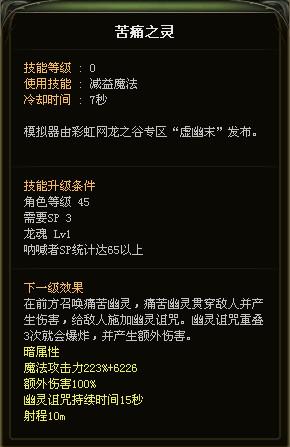 苦痛之灵输出伤害也很可观,特备是诅咒叠加3次后还有爆炸的额外伤害。可以说这个技能是属于噬魂的主要输出技能,所以建议大家点满。