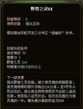 首先是野兽之灵的奔跑距离缩短了,大概是原来的二分之一。然后就是原本蓝色的狼变成了红色的狼,它攻击力也有所提升。最为重点的是,在学习了野兽之灵EX之后,大家可以惊奇的发现——咱们噬魂者的狼生仔了……(PS:我们可爱的小狼被做了神马?!)咳咳……扯远了,赶紧回到原题……
