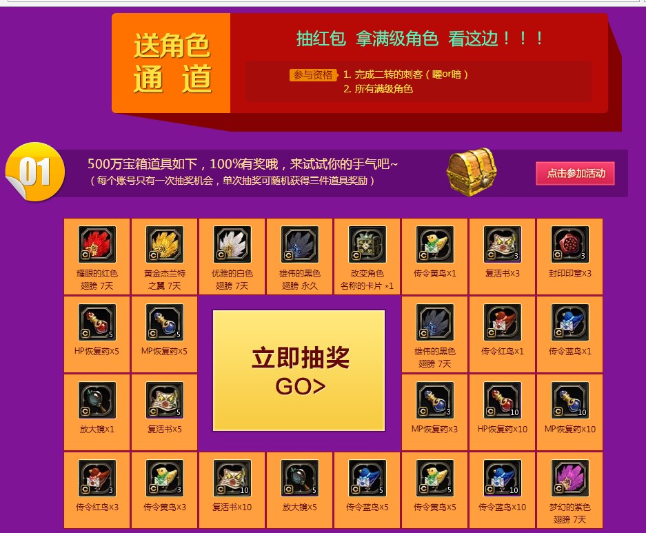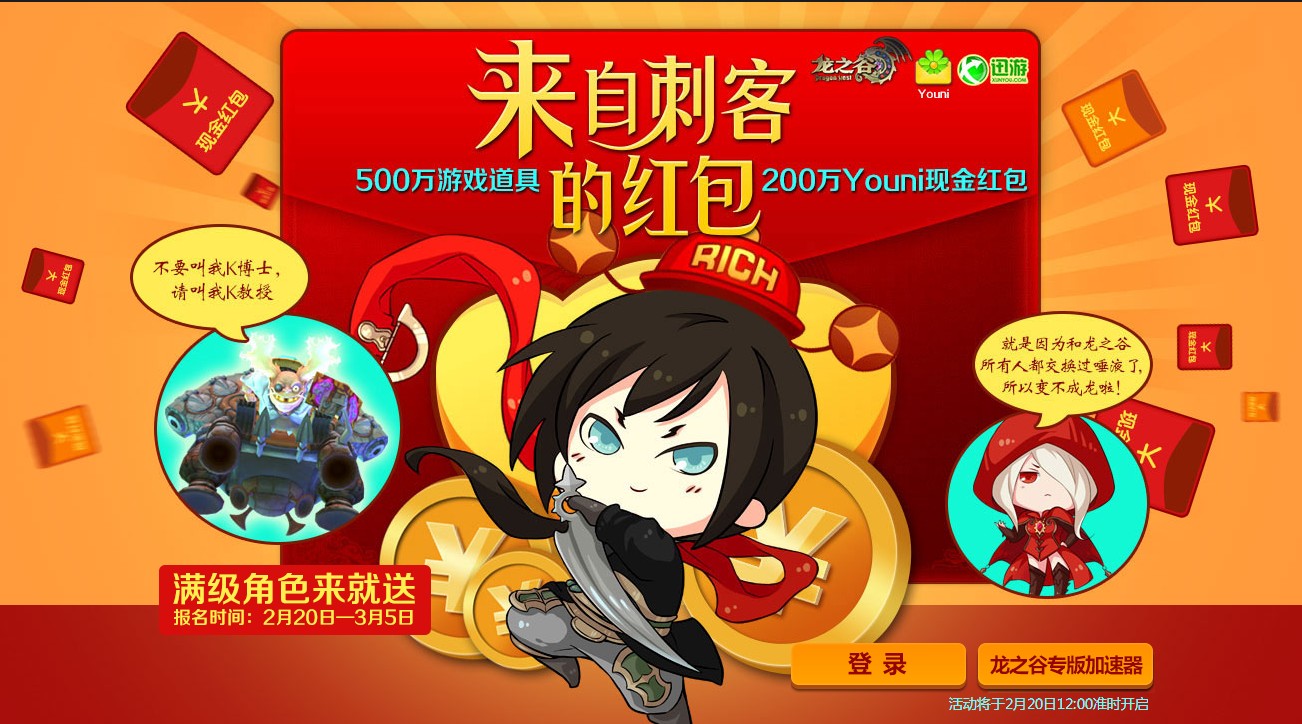 > 来自刺客的红包:超大红包 送满级角色