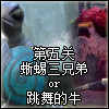 第五关又是一个随机关,玩家可能遭遇蜥蜴三兄弟或者跳舞牛。蜥蜴三兄弟相较跳舞牛来说难度减轻非常多。蜥蜴三兄弟是来自普通副本里BOSS,三人随机血量和防御,其中两个厚血,一个血薄。三头分别为冰,电跟物理属性。冰跟电蜥蜴都有全屏技能,但可以打断,物理蜥蜴攻高容易秒人。三头蜥蜴杀掉其中一头后,必须在10秒内速度杀掉另外两头,否则会重生。